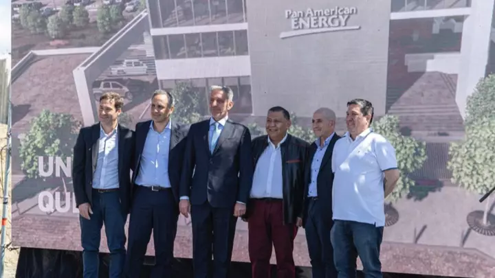 El Group CEO de Pan American Energy, Marcos Bulgheroni, el gobernador de Chubut, Mariano Arcioni, y el intendente de Comodoro Rivadavia, Juan Pablo Luque, encabezaron el acto en el que se colocó la piedra fundamental de la futura sede corporativa. También participaron el secretario General del Sindicato de Petroleros Privados, Jorge Avila; el secretario de Petroleros Jerárquicos, José Lludgar y el secretario General de la Uocra, Raúl Silva.