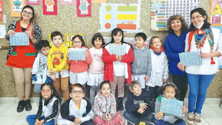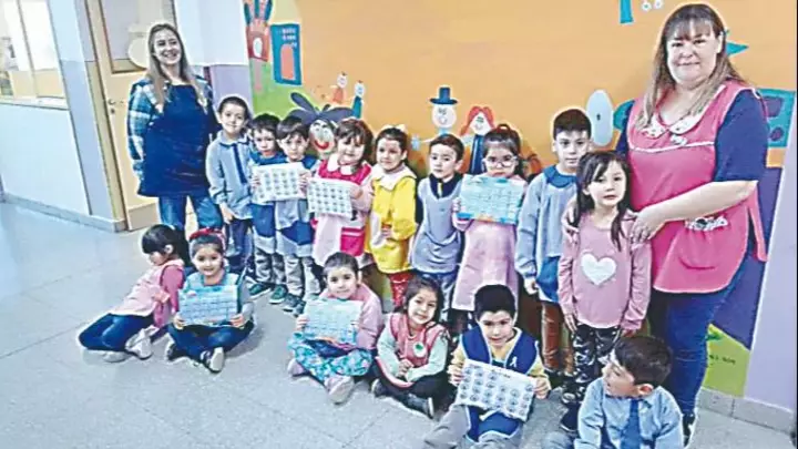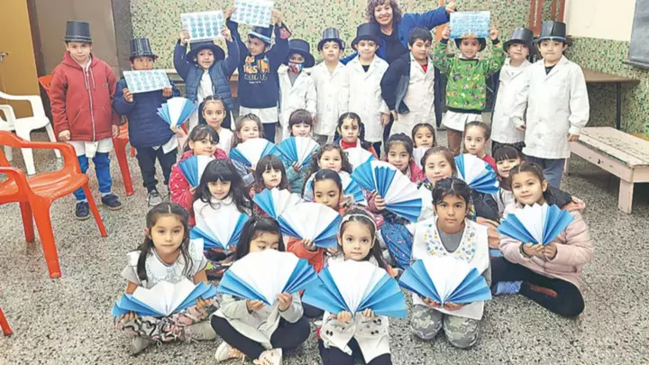 En el Jardín de Infantes 404 de Rawson, establecimiento apadrinado por diario EL CHUBUT, recibieron escarapelas niños y niñas, la docente de la Sala de 5, Mara Echegaray y la directora María Cecilia Lodola.