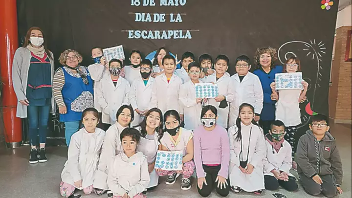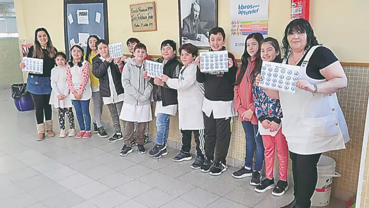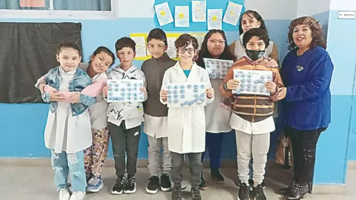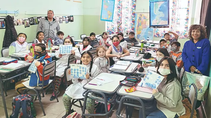 En la Escuela 122 del barrio Alberdi, este grupo de 4º grado recibió a EL CHUBUT, junto a la directora Verónica.