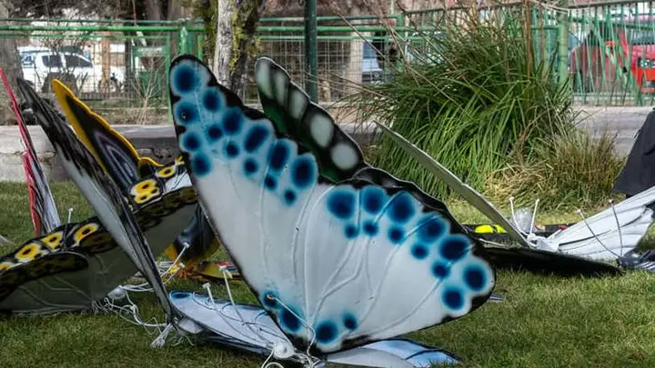 Las mariposas tienen los colores de las banderas de las diferentes colectividades que pueblan la localidad de Gaiman.