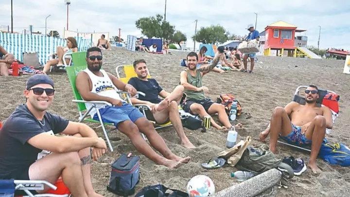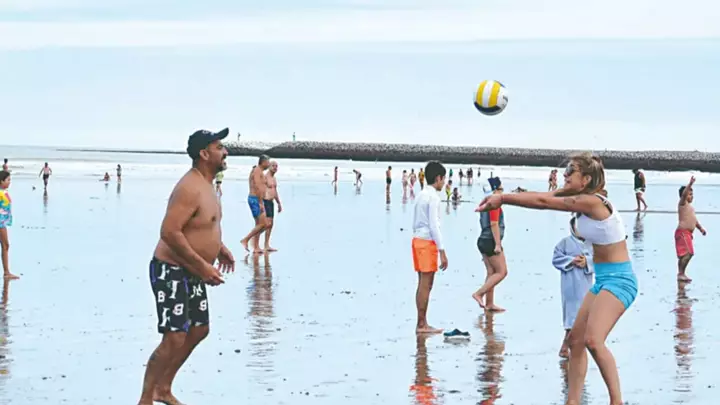 Mucha gente se acercó ayer a la playa y, por la tarde, se aprovechó la marea baja y la gran extensión de arena libre. Si bien no muchos se animaron a meterse al mar, a excepción de los chicos obvio, sí armaron canchas para juegos de playa, como vóley, tejo y picaditos. Otros prefirieron las charlas mate por medio, en grandes grupos, como viene siendo característico este verano.