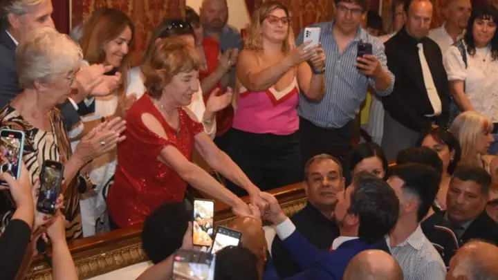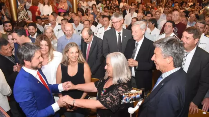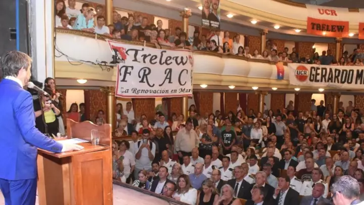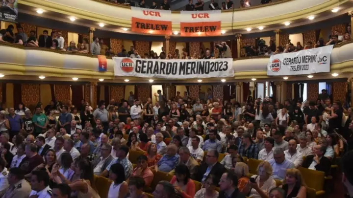 En las primeras filas del icónico teatro se encontraba el intendente saliente, Adrián Maderna, y dirigentes políticos del radicalismo y de la alianza Juntos por el Cambio, encabezados por vicegobernador Gustavo Menna. También estuvieron presentes los jefes comunales de las localidades cercanas como Darío James de Gaiman, Damián Biss de Rawson, Adriana Agüero de 28 de Julio y Gustavo Sastre, de Puerto Madryn, como así también el exmandatario de Esquel y actual diputado, Sergio Ongarato.