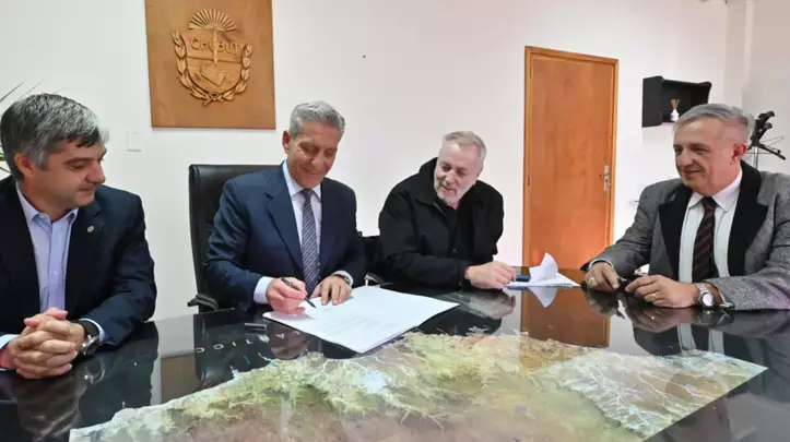La firma se realizó en el despacho del Gobernador, luego de una reunión que mantuvo con los ministros de Infraestructura, Gustavo Aguilera; y de Economía, Oscar Antonena; y el titular del Ente Regulador de Servicios Públicos (ENRE), Gustavo Monesterolo.