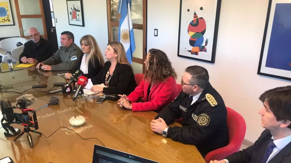 Desde la sala de acuerdos del Superior Tribunal de Justicia en Rawson, y acompañada de la secretaria del TEP, Adriana Villani, y autoridades de Correo Argentino y Gendarmería Nacional.