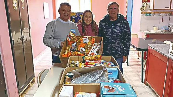 Donaron ropa para ferias y alimentos no perecederos en el Comedor «Pequeños Gigantes» de Trevelin. También entregaron logos de Malvinas en la sede de la Policía Comunitaria de Esquel y una impresora a la Escuela Secundaria 7722 de esa ciudad.