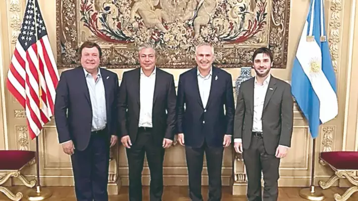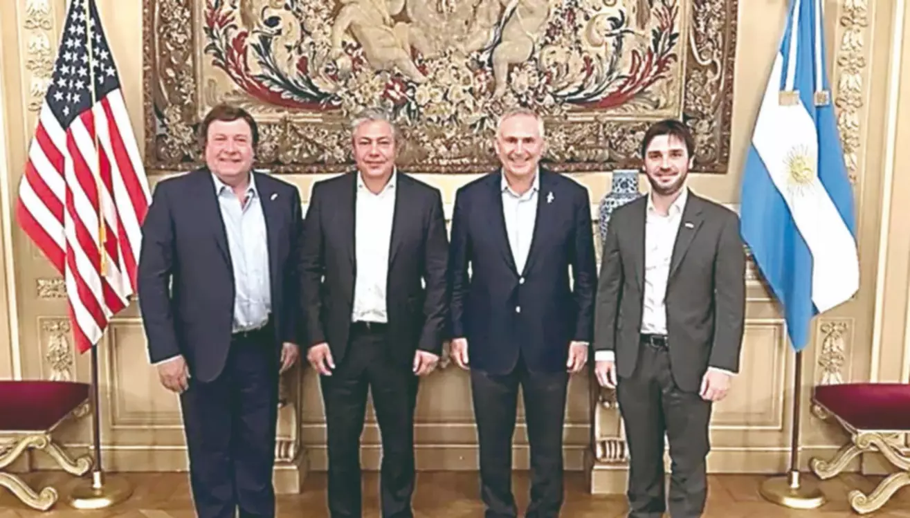 Ignacio «Nacho» Torres, junto a sus pares de Neuquén y Río Negro, Rolando Figueroa y Alberto Weretilneck, respectivamente, y el embajador de Estados Unidos, Marc Stanley.