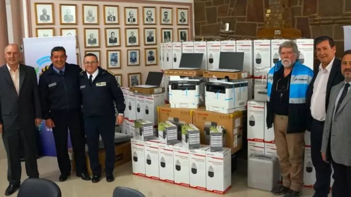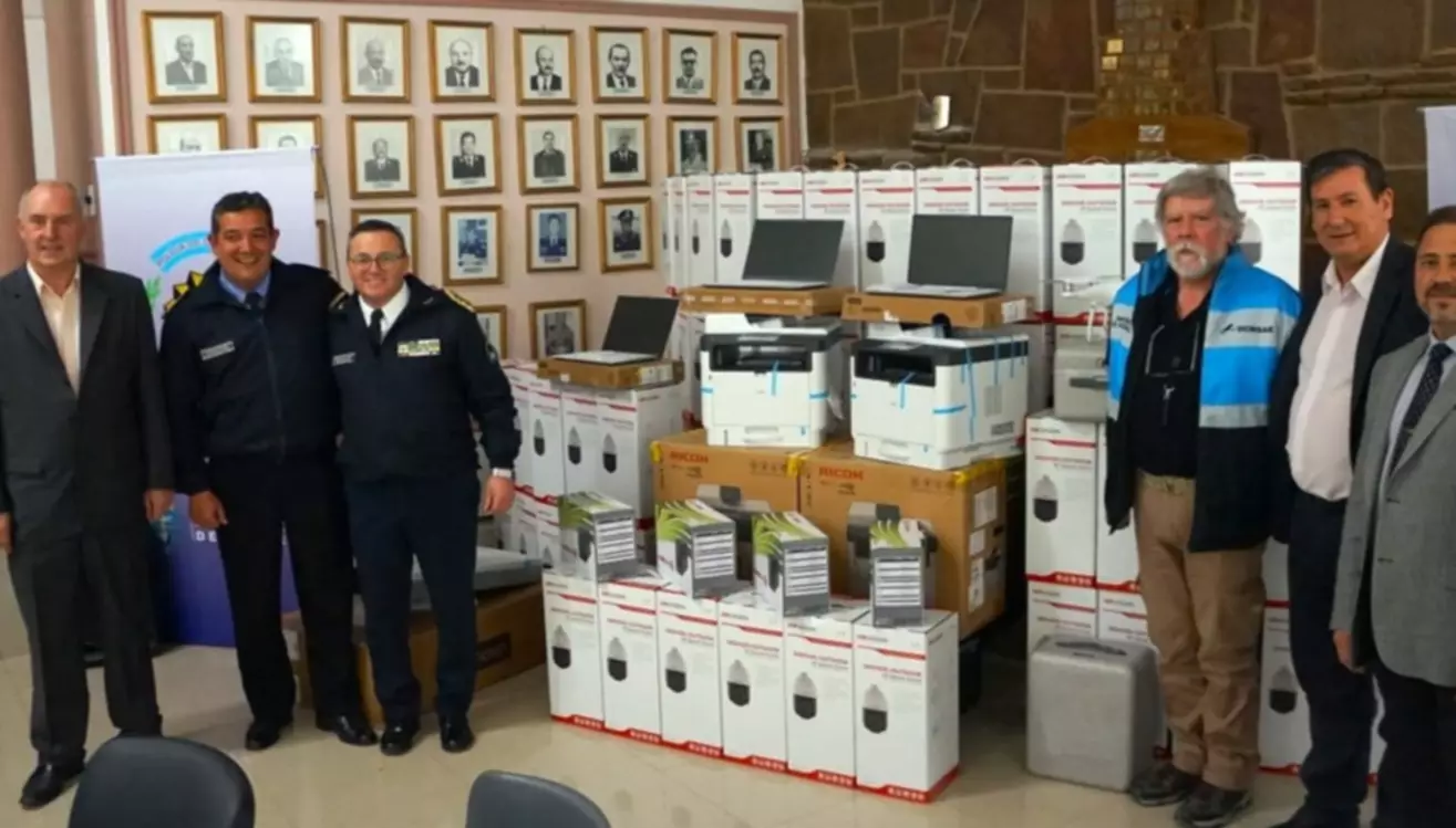 El Ministerio de Seguridad de la Provincia, puso a disposición tres notebook, un servidor, 13 impresoras láser, cuatro dispositivos informáticos para preservar el desarrollo informático y 50 cámaras domos para que la Policía del Chubut los ponga en funcionamiento acorde a las prioridades institucionales contempladas en el «Plan de Seguridad».