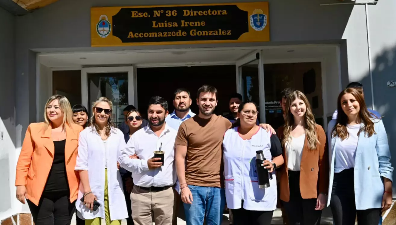 El gobernador del Chubut, Ignacio “Nacho” Torres, visitó este sábado la Escuela Nº 36 de Río Mayo, donde padres, docentes y miembros de la comunidad ayudaron a pintar las instalaciones, en el marco del proyecto "Juntos por la educación".