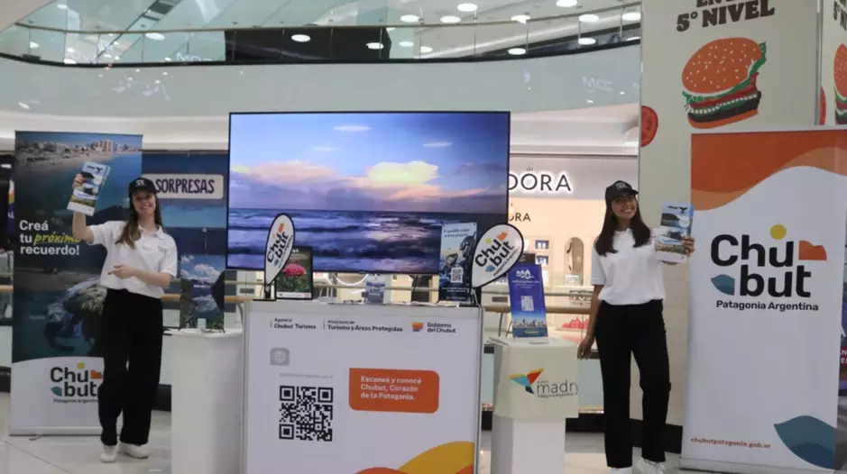 La provincia concentró su gira en buscar potenciales turistas de manera directa. Por eso, se estableció un stand institucional de Chubut Patagonia en los principales shoppings de las ciudades de Puerto Varas y Valdivia.