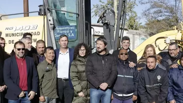 El intendente de Trelew, Gerardo Merino, encabezó la presentación de una camioneta 0 KM y una motoniveladora que fue reparada; unidades que pasarán a formar parte de los trabajos operativos que realiza a diario el Municipio.