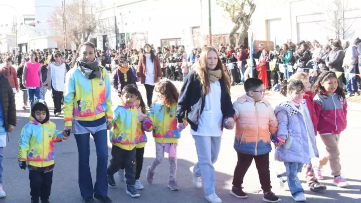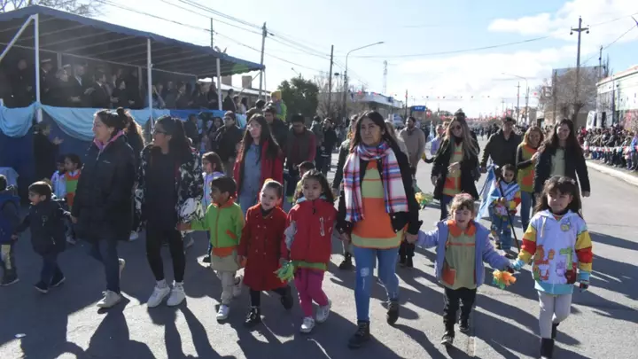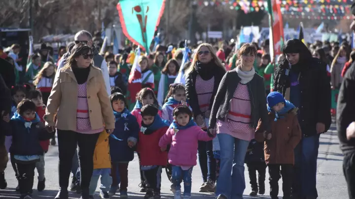 Tras las palabras del mandatario local, las instituciones culturales, sociales y deportivas, como así también las fuerzas vivas, recorrieron la avenida Tello para saludar a toda la comunidad y celebrar juntos un nuevo aniversario de Gaiman.