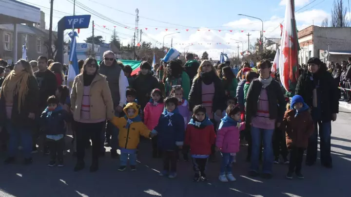 Gaiman cumplió el pasado 14 de agosto sus 150 años de vida y ayer tuvo su acto central con un desfile de instituciones por la avenida Tello, donde el intendente Darío James agradeció la presencia de funcionarios provinciales y de autoridades de municipios vecinos.