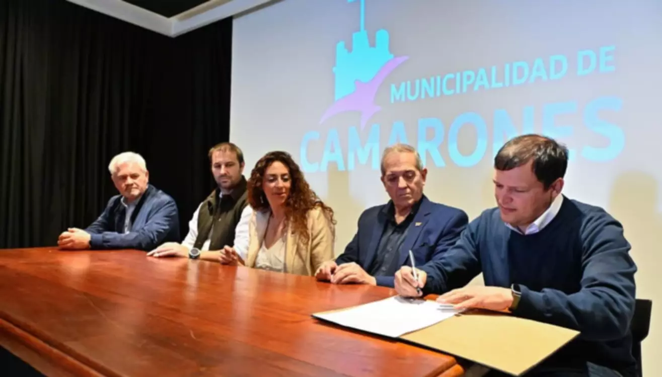 A las 11:30 horas, en el Centro de Encuentro Municipal de Camarones (CEMM), se llevó adelante la firma de convenios con organismos provinciales y locales; el primero de ellos, entre la Administración de Vialidad Provincial y la Municipalidad de Camarones para la construcción de 653 metros lineales de cordón cuneta en avenidas de la localidad, el cual fue rubricado por el titular del organismo, Federico Drescher, y por la intendenta Claudia Loyola.