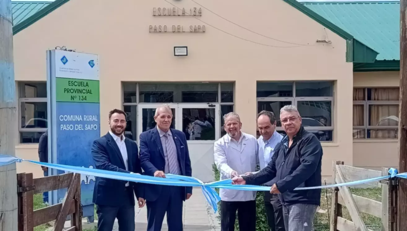 El Gobierno Provincial inauguró este jueves una serie de obras y mejoras edilicias en la Escuela N° 134 de Paso del Sapo, las cuales fueron concretadas con el acompañamiento de la Fundación Ford y la articulación del Ministerio de Educación del Chubut.