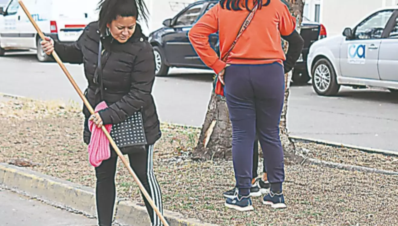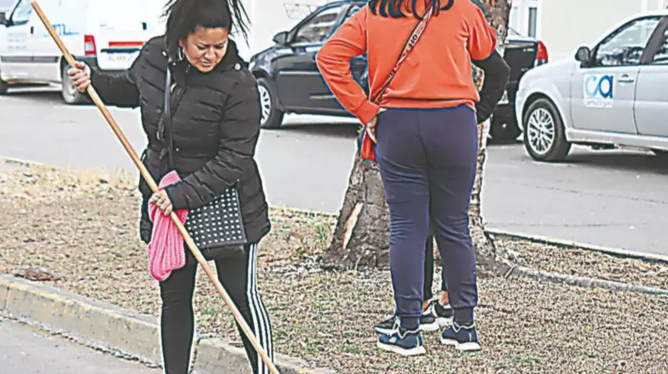Los jóvenes barren la avenida Rawson desde Edison hasta Pellegrini, y están en horas de la mañana en ese sector.