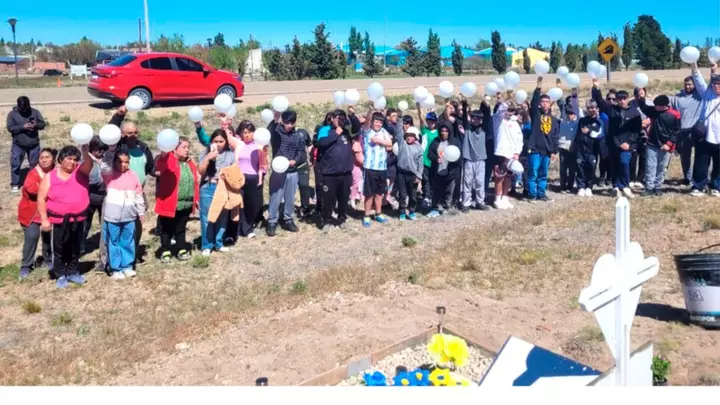 El pueblo de Paso de Indios acompañó en silencio, con globos blancos. Vecinos del lugar, que también son padres en duelo, se acercaron con sus palabras a la familia. Marcos y Johana agradecieron el afecto recibido, el cariño, y dijeron que van a volver seguido al pueblo, que no se sienten solos.