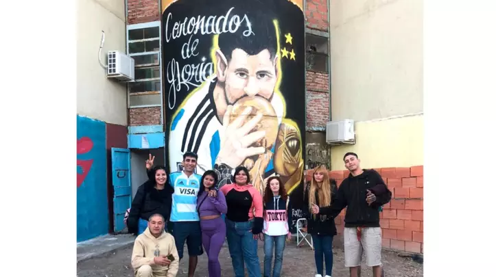 Messi tiene su mural en Las Mil Viviendas con la Copa del Mundo