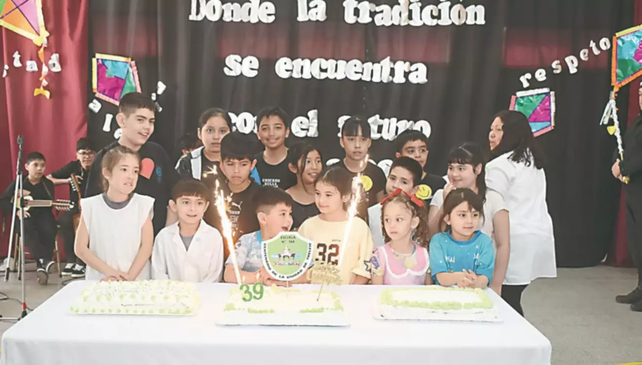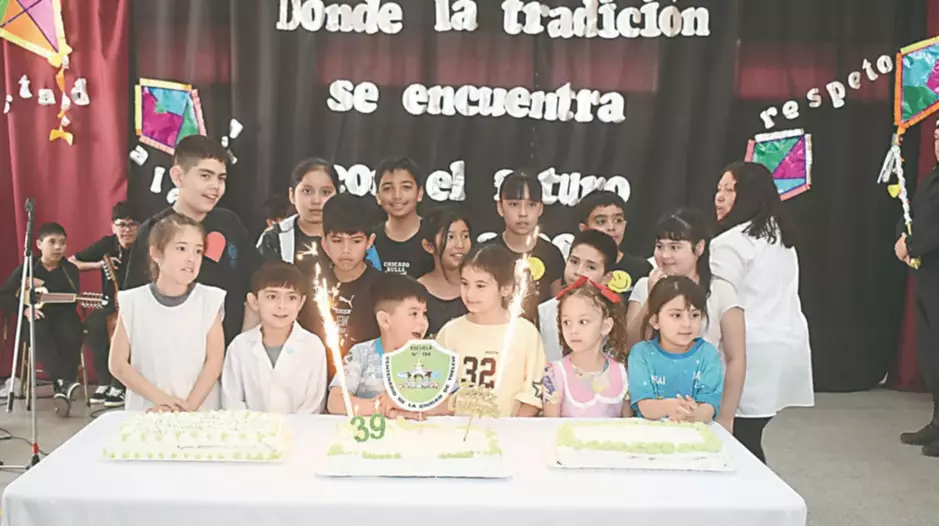 La Escuela 164 «Centenario de la Ciudad de Trelew» celebró ayer sus 39 años de historia. Se ubica en el límite de los barrios Constitución y Los Aromos. Una comunidad educativa de jornada completa, con una numerosa propuesta de talleres y actividades.