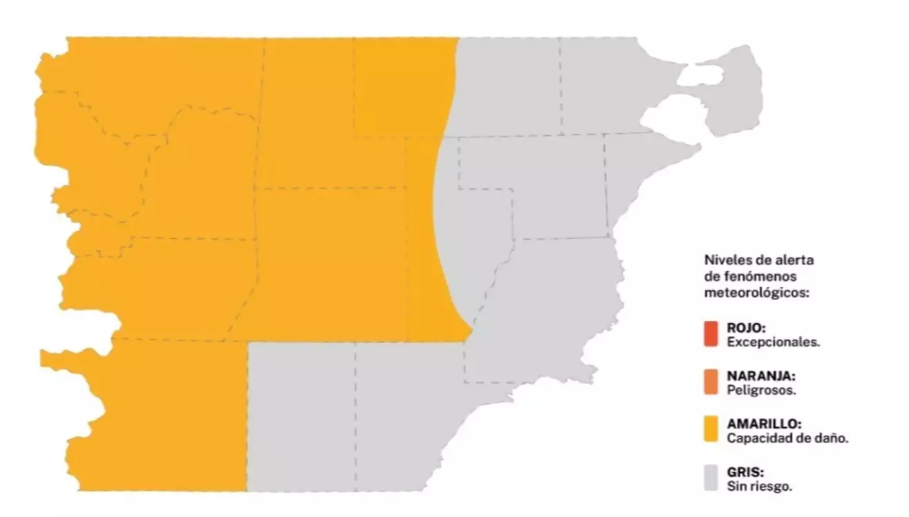 Zonas incluidas en el alerta: Cushamen, Futaleufú, Languiñco, Tehuelches, Río Senguer, Gastre, Paso de Indios, oeste de Telsen y oeste de Mártires.