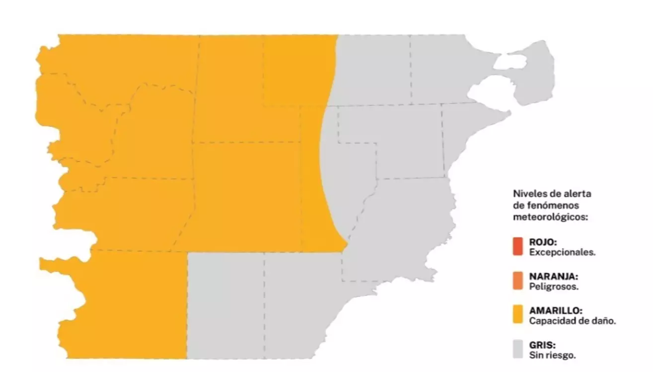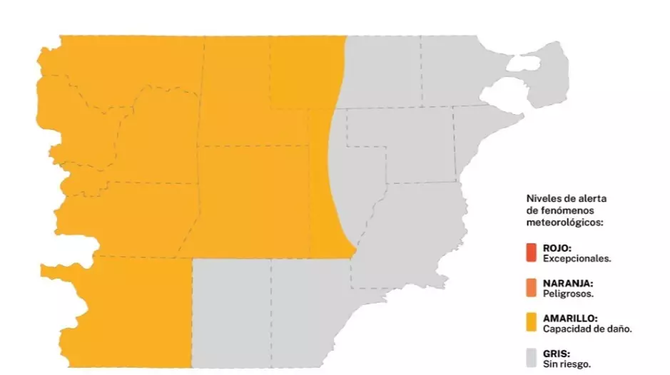 El fenómeno prevé vientos del sector norte con velocidades entre 40 y 60 km/h, y ráfagas que podrían alcanzar los 90 km/h, por lo que se solicita a la población tomar las medidas de precaución necesarias, especialmente en rutas y zonas rurales.