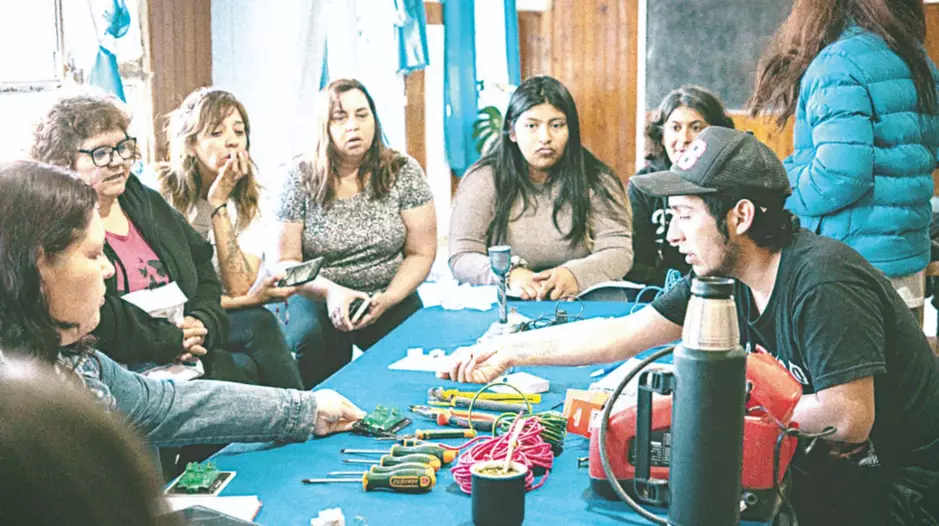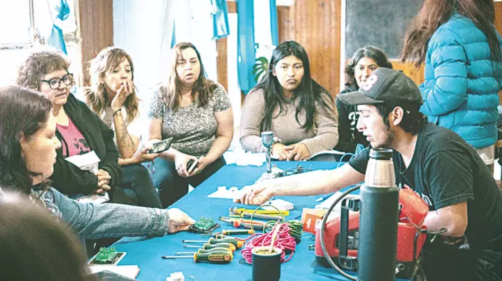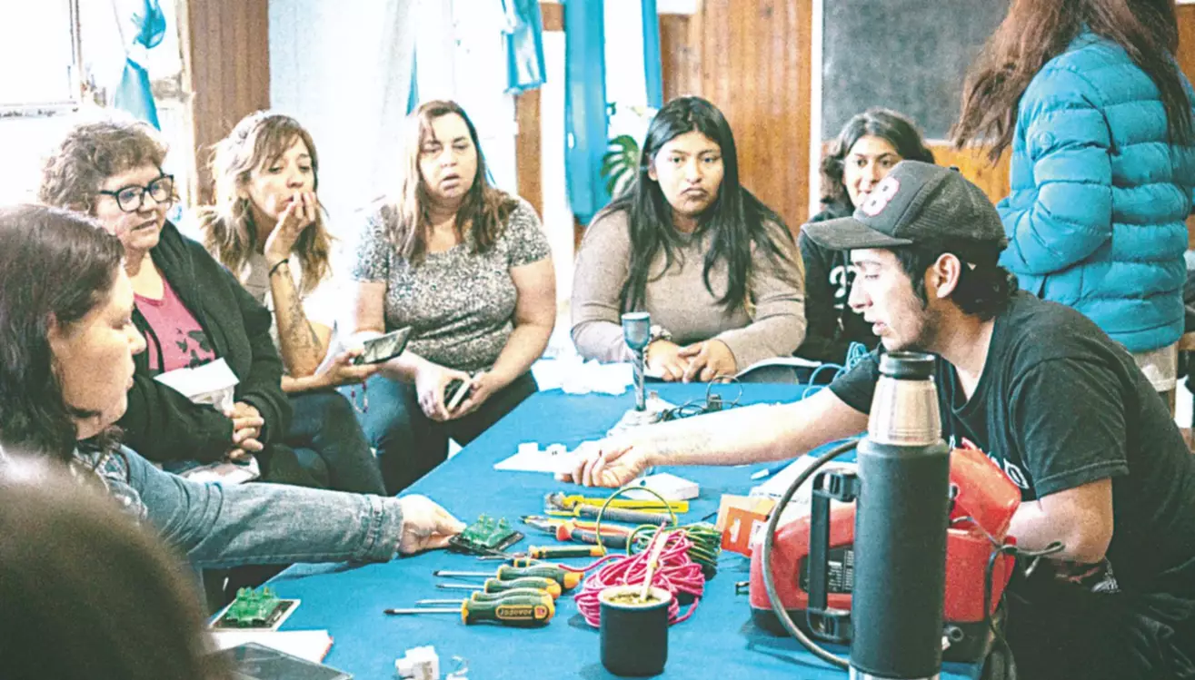 El encuentro se desarrolló en Rawson con la participación de alrededor de 20 mujeres, quienes realizaron ejercicios prácticos de reparación de electrodomésticos y elementos como alargues, veladores y moladoras.