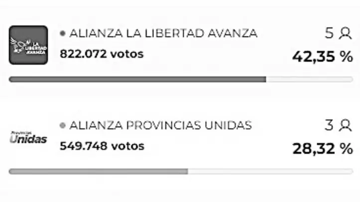 En Córdoba, La Libertad Avanza se impuso con el 42,35%, seguida por Provincias Unidas con el 28,32%
