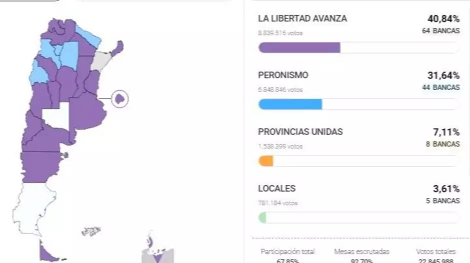 En ese sentido, cabe destacar que La Libertad Avanza se impuso en 16 distritos, incluyendo la Ciudad Autónoma de Buenos Aires y la Provincia de Buenos Aires.