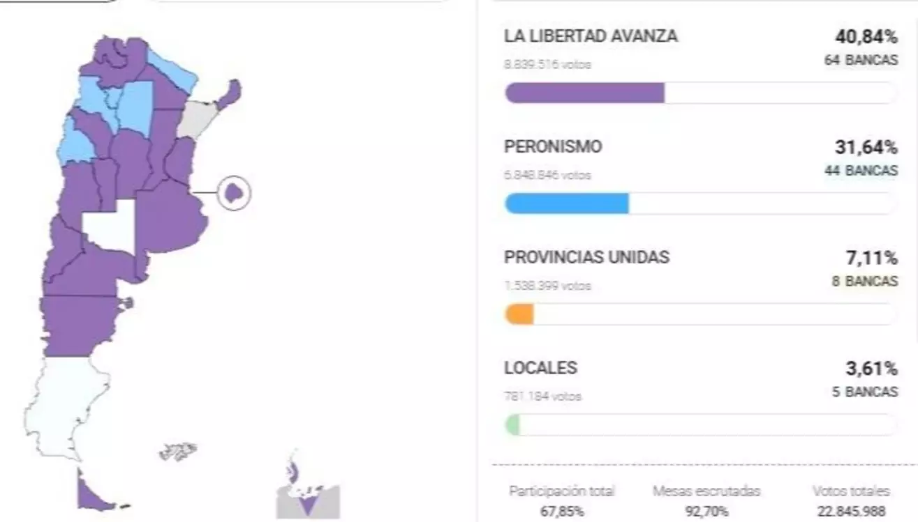 La Libertad Avanza superó el 40% a nivel nacional y se impuso en 16 distritos