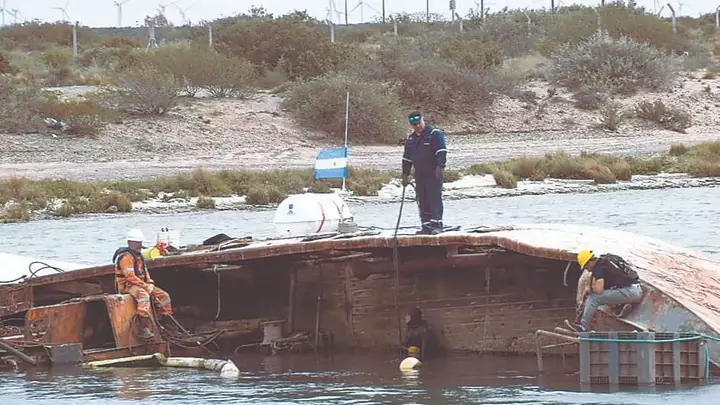 Buzos especializados y personal técnico ya trabajan sobre la estructura de la nave, en una primera etapa que contempla el relevamiento exhaustivo del casco y la preparación de un plan de remoción aprobado por la autoridad marítima. Los operarios realizan maniobras preliminares para estabilizar la embarcación y garantizar que el operativo se ejecute sin riesgos adicionales, bajo supervisión de Prefectura.