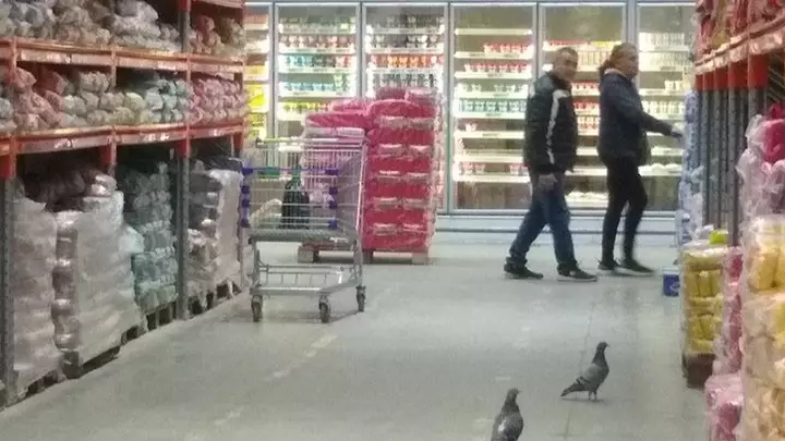 Causó sorpresa en muchos de los consumidores la presencia de palomas entre la mercadería del supermercado mayorista Yaguar, ubicado en el ingreso norte a Trelew. Ocurre que es habitual observar esas aves, más allá de su apariencia serena, en lugares de expendio de alimentos.