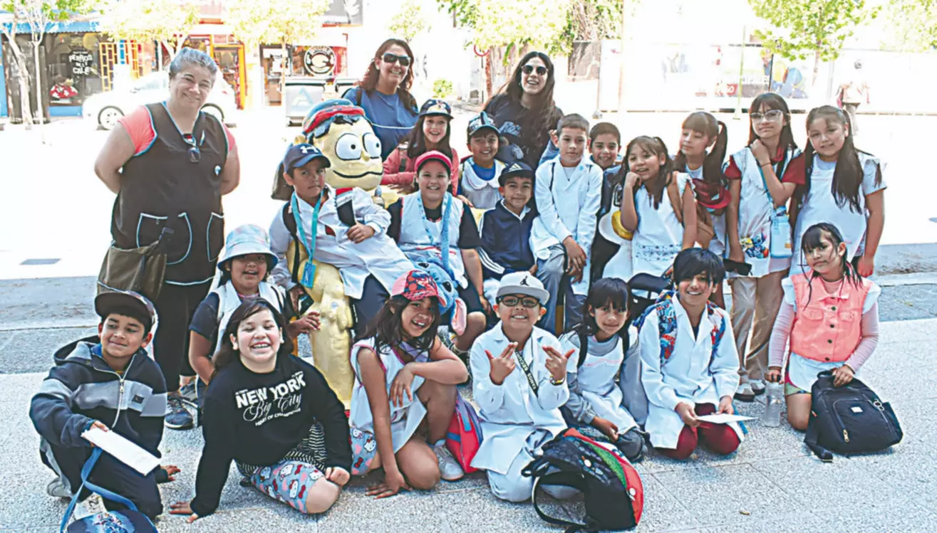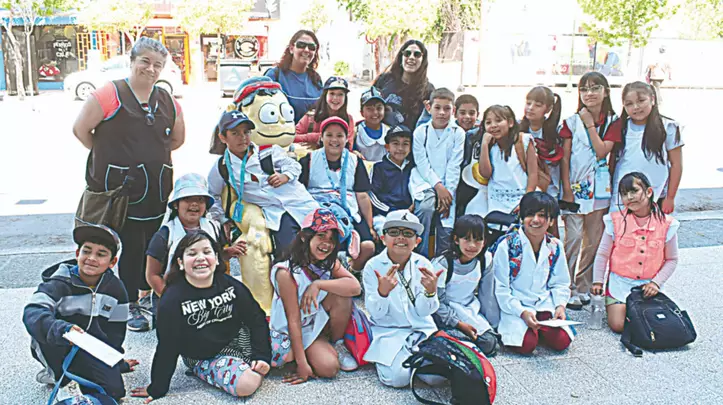 Estudiantes de la Escuela 216 del barrio Inta recorrieron el radio céntrico de Trelew en la mañana de ayer, llegando a diversos edificios públicos, arterias y monumentos, e hicieron un alto en diario EL CHUBUT para posar frente a las instalaciones de este medio y con Chubutín y Luis. Los alumnos son de tercer grado.
