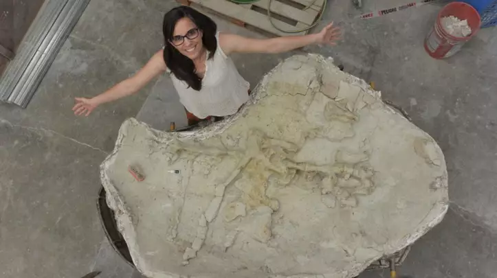 El ejemplar fue descubierto en 2016 en las costas de Chubut a unos 40 Km de la ciudad de Trelew, por especialistas del CONICET-CENPAT en el marco de una campaña paleontológica para buscar cetáceos. «Estaba prácticamente en el borde de un cañadón profundo cerca de la línea de costa y a casi 2 km del camino más cercano», cuenta Juliana Sterli (CONICET-MEF).