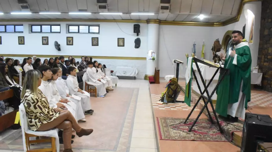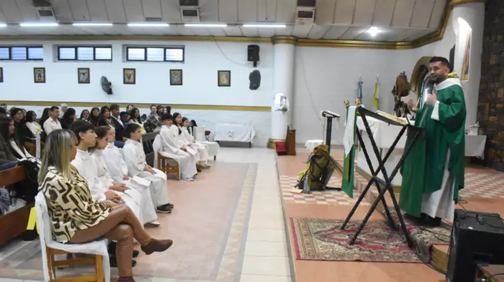 En encuentro religioso fue dirigido por el padre Sánchez, recientemente consagrado sacerdote. Los chicos fueron preparados por la catequista Patricia Alvarez y contó con el acompañamiento de un colmado templo, integrado por familiares y feligreses que habitualmente concurren al servicio religioso.