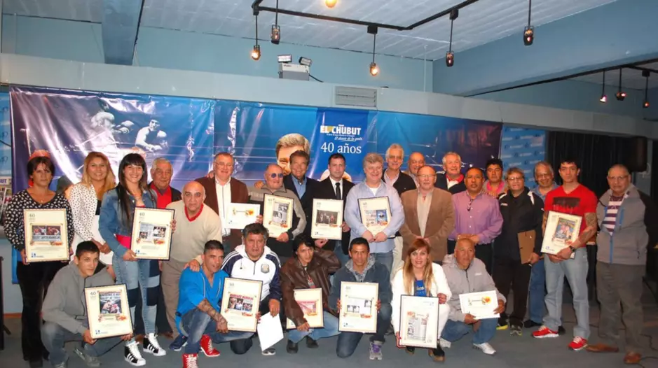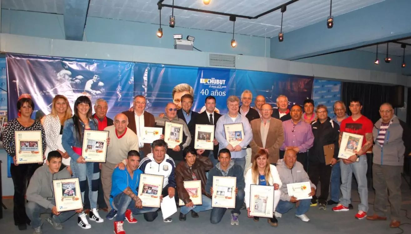 Fueron los boxeadores y boxeadoras que llevaron la representación de Trelew a otras latitudes. En la foto se puede apreciar también a ex boxeadores, a dirigentes de la Comisión Municipal de Boxeo, ex manager y periodistas. Este recuerdo pertenece a nuestros archivos de septiembre de 2015.