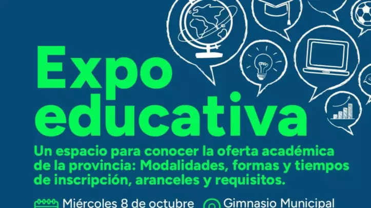 El próximo miércoles 8 de octubre, el Gimnasio Municipal de Dolavon será sede de la Expo Educativa, un espacio pensado para que estudiantes y público en general puedan conocer la amplia oferta académica disponible en la provincia.