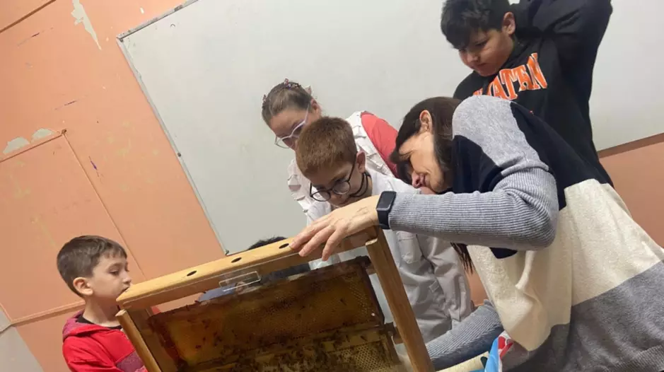 LOS CHICOS CON LOS APICULTORES