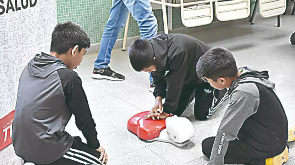 La Municipalidad de Trelew, a través de la Coordinación de Salud, brindó una jornada de capacitación en técnicas básicas de Reanimación Cardiopulmonar (RCP) a estudiantes de la Escuela Nro 216 del barrio Inta.