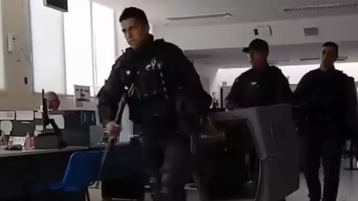 Circularon videos en redes sociales de cómo personal policial tomaba posesión, ante el reclamo de los empleados, que resultó pacifico. Tampoco el usuario se anotició de la medida de fuerza de los trabajadores de la empresa, que se desayunó con un escueto mensaje adherido a las puertas de ingreso al edificio: «Estamos de paro». La nota estaba acompañada por dos efectivos policiales.