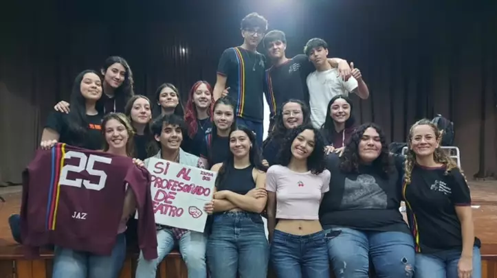 Estudiantes del Colegio Don Bosco de Rawson asistieron a la presentación de la obra «Más fuertes que el miedo», que se ofreció en el Centro Cultural de esa ciudad, a cargo del elenco del Instituto de Formación Docente Artística 805.