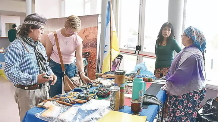 Durante la jornada se presentaron diversas producciones artesanales, propuestas de valor agregado, muestras culturales y el taller de hilado y tejido mapuche que dicta Doña Alda Torres en la sede del área de Pueblos Originarios.