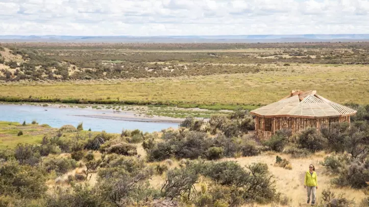 Hay paisajes que se leen por oído. Patagonia Azul es uno de ellos: el crujido seco del coirón, el chasquido de lajas en bajante, un llamado breve que recorre la marisma como una flecha. Los colores completan la partitura: marrones intensos y apagados, azules densos, óxidos suaves. En esa paleta, las casitas no interrumpen; se alinean. La experiencia no se vuelve exclusiva por el precio del confort sino por el sentido de la propuesta. “Estos camps dan la posibilidad de conocer de verdad el Parque Patagonia Azul”, resume Mendizábal.