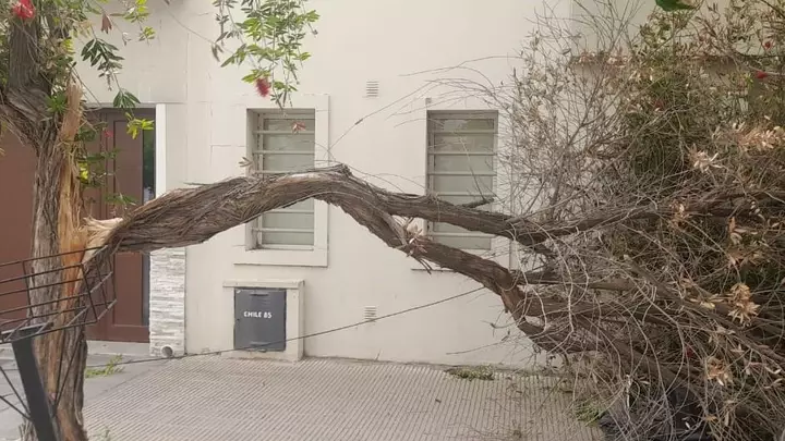 Uno de los episodios más impactantes ocurrió en horas de la tarde en calle Urquiza norte, entre Edwin Roberts y Ricardo Berwyn, donde se desplomó el paredón frontal de una vivienda. En la misma zona se registró además el desprendimiento de varios portones, arrastrados por la fuerza del viento, mientras que otros debieron ser reforzados. Vecinos del sector señalaron que la situación se volvió riesgosa durante varios minutos debido a la cantidad de objetos que cruzaban la calzada impulsados por las ráfagas.