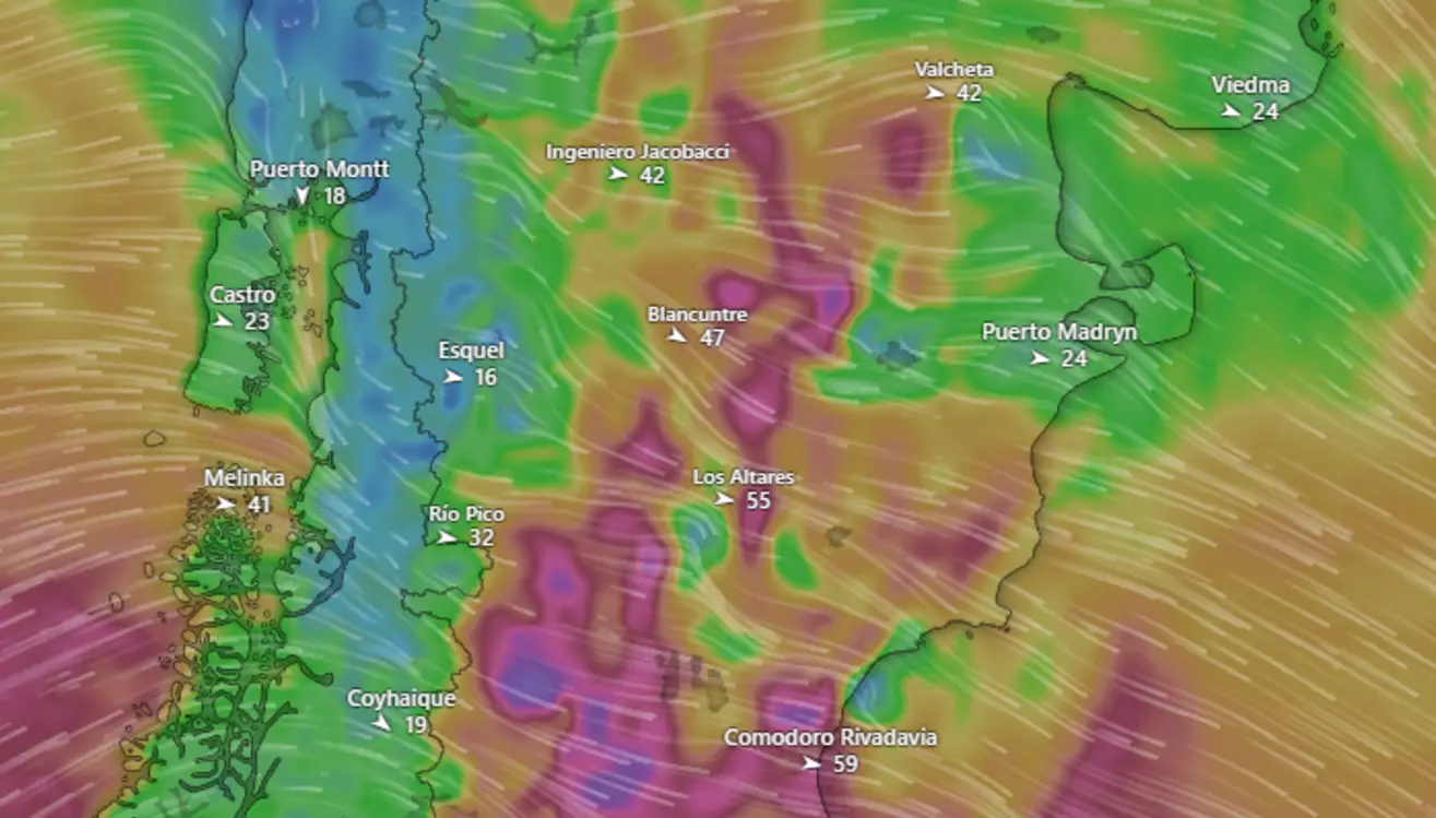 La pronosticadora del Servicio Meteorológico Nacional, Nelly Huenchur, confirmó este lunes que la provincia enfrenta una jornada de vientos muy intensos, con importantes ráfagas que en el Valle y la costa. “Van a tener la mayor intensidad de viento durante la tarde, entre las 3 y las 10 de la noche, con ráfagas que pueden superar los 110 kilómetros por hora”, explicó.