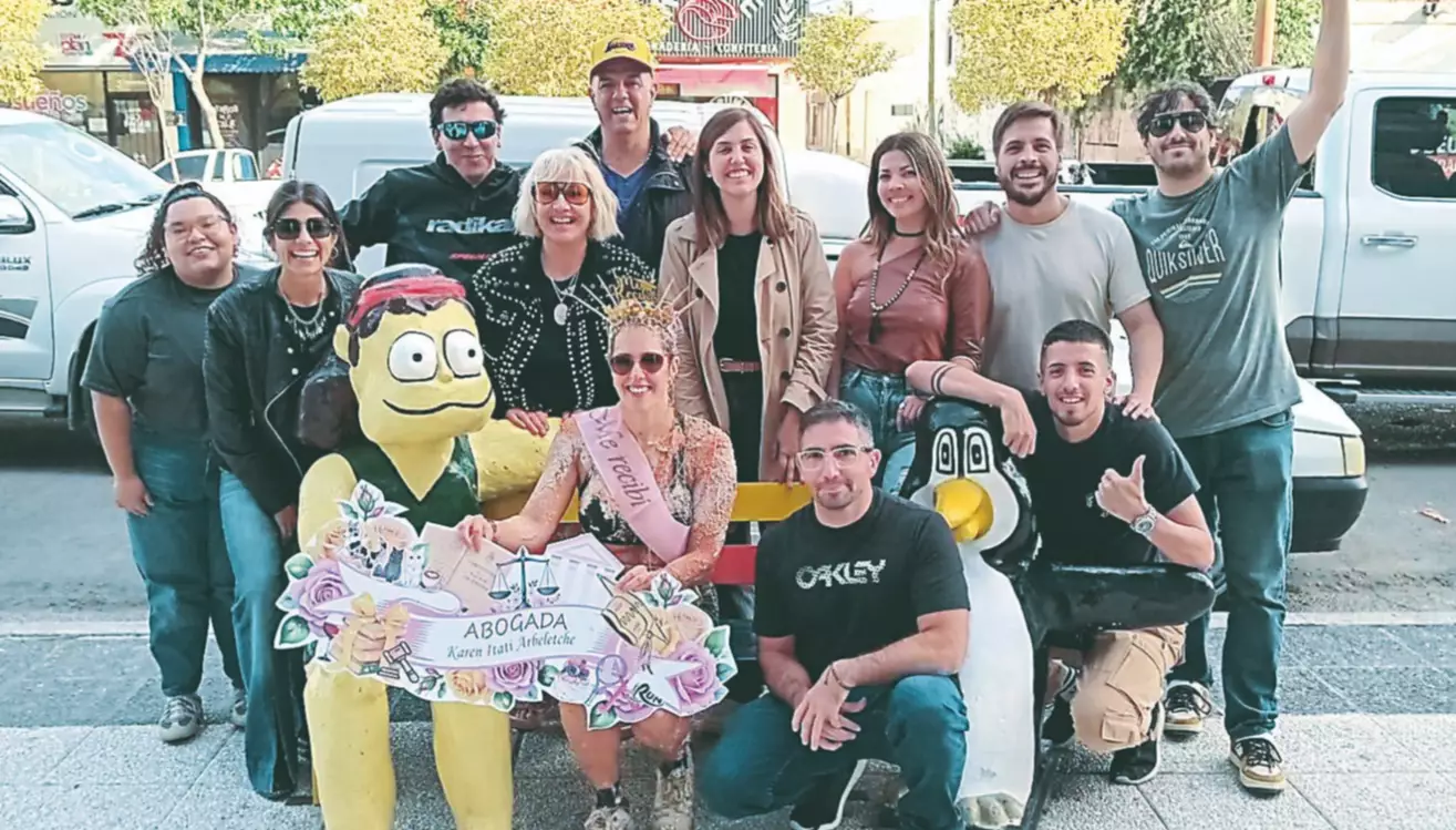 Por supuesto la nueva profesional salió de festejo de inmediato, con una ruidosa y alegre caravana que hizo un alto en las puertas de EL CHUBUT, acompañada por su mamá Alejandra, su papá Pablo, su hermano Gianfranco, su novio Cristian, además de tíos, sobrinos, compañeros, amistades y hasta su querida perrita, que formó parte de la celebración como una integrante más del grupo. Karen, nacida y criada en Trelew, ya es martillera pública y se desempeña en esa área profesional, a la que ahora suma el título de abogada. Casi al finalizar la celebración, agradeció a la Universidad, a su familia y amigos, que la colmaron de afecto.