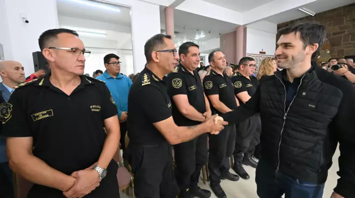 El gobernador detalló que desde el Estado “vamos a acompañarlos en la prevención”, y agregó que “primero lo haremos desde la formación, logrando que, después de muchísimo tiempo y con los recursos que generemos producto de los bienes incautados de la corrupción, los cadetes tengan su nueva escuela de formación en Rawson”.