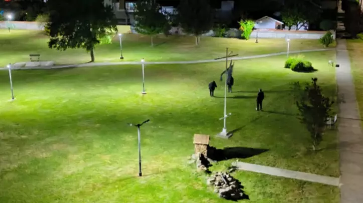En total se instalaron 22 nuevos artefactos de alumbrado LED, más eficientes para la iluminación de la plaza, con mayor vida útil y menor consumo energético.