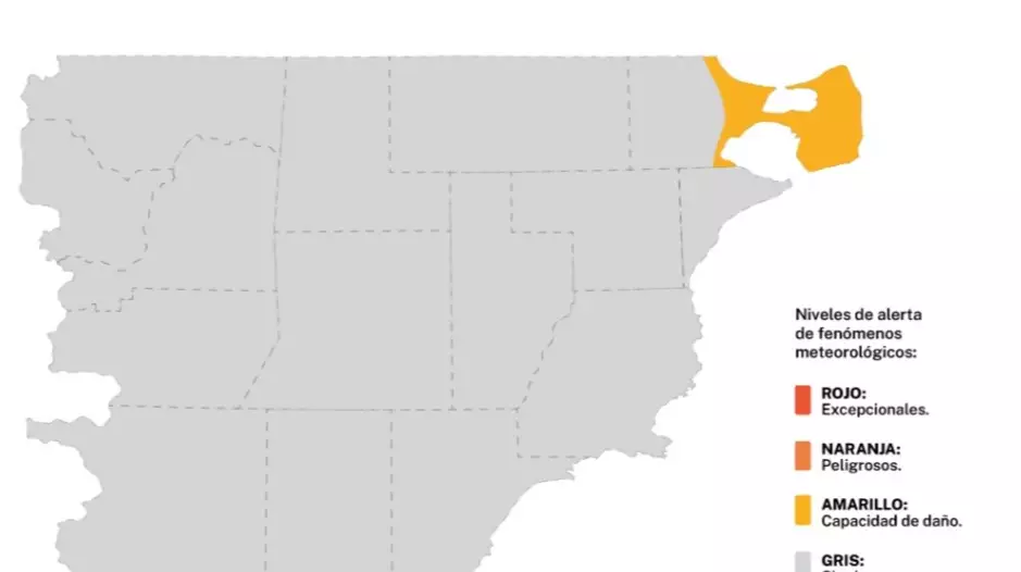 Los valores de lluvia acumulada estimados se ubican entre 10 y 20 milímetros, aunque no se descarta que puedan superarse de manera localizada.