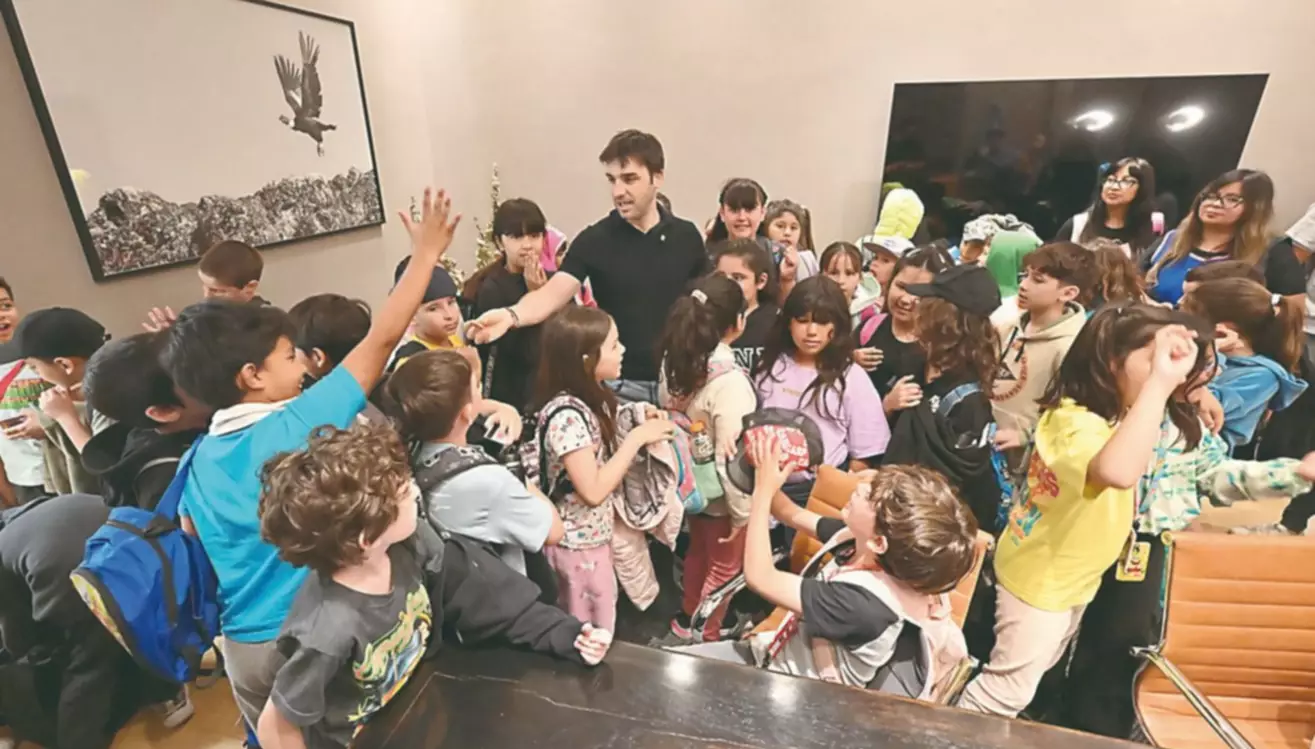 El gobernador del Chubut Ignacio «Nacho» Torres recibió ayer viernes en la Casa de Gobierno en Rawson a alumnos de la Escuela Nro 190 de Playa Unión a quienes los invitó a conocer su despacho y otras dependencias de la sede del Poder Ejecutivo provincial.