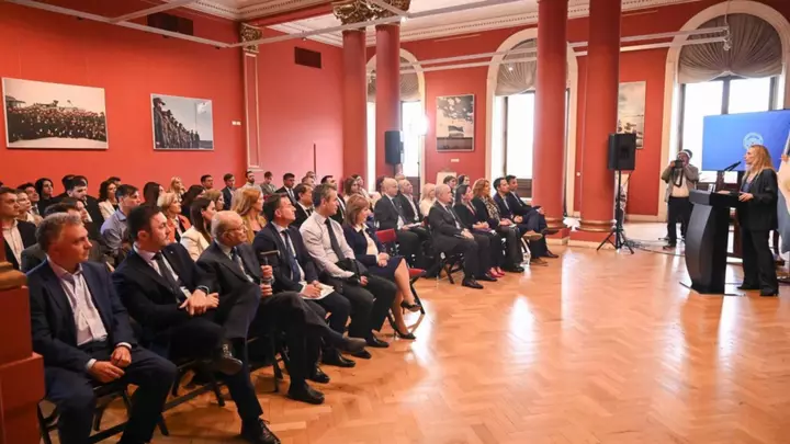 Más de 40 dirigentes libertarios que resultaron electos diputados en la votación del 26 de octubre desembarcaron en la sede gubernamental, donde fueron recibidos por Karina Milei y el titular de la Cámara de Diputados, Martín Menem, en el Salón Malvinas de la planta baja del edificio.