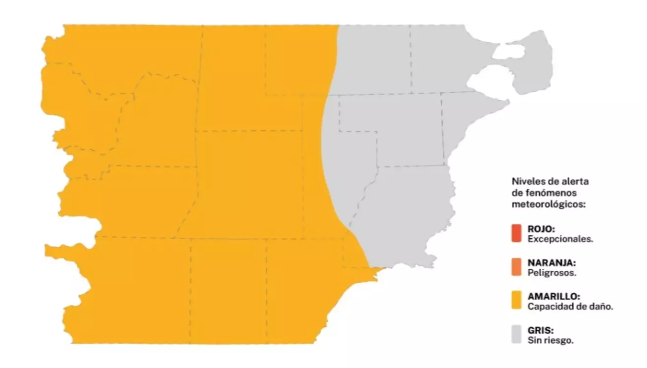 La Subsecretaría de Protección Ciudadana, dependiente del Ministerio de Seguridad y Justicia, informó una actualización del alerta amarilla por vientos emitido por el Servicio Meteorológico Nacional para la tarde del viernes 12 de diciembre.